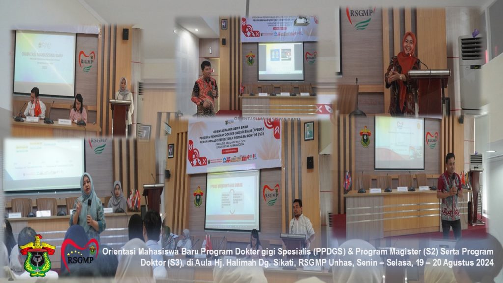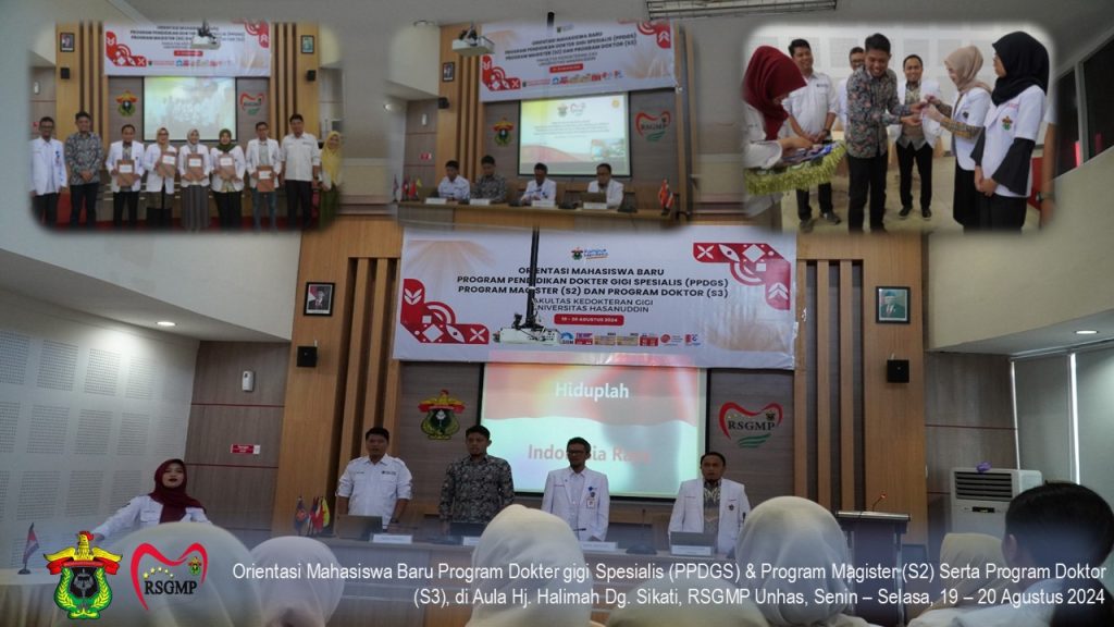Makassar, 22 Agustus 2024 – Rumah Sakit Gigi dan Mulut Pendidikan (RSGMP) Universitas Hasanuddin (Unhas) bersama Fakultas Kedokteran Gigi (FKG) Unhas baru-baru ini menggelar acara penyambutan bagi mahasiswa baru yang diterima dari program studi profesi dokter gigi spesialis (PPDGS), Program Studi Magister kedokteran gigi (S2) serta Program Doktor Ilmu Kedokteran gigi (S3). Acara ini diadakan dengan tujuan untuk memperkenalkan mahasiswa baru pada lingkungan akademis dan praktis, serta memberikan pemahaman mendalam tentang program pendidikan yang akan mereka jalani kedepan.