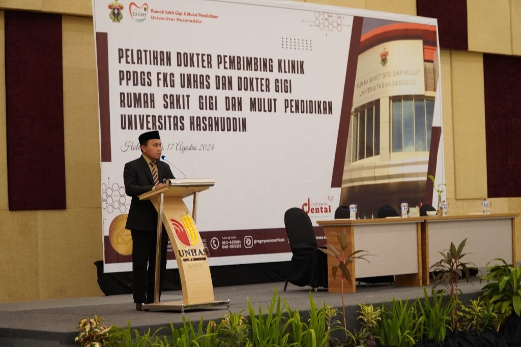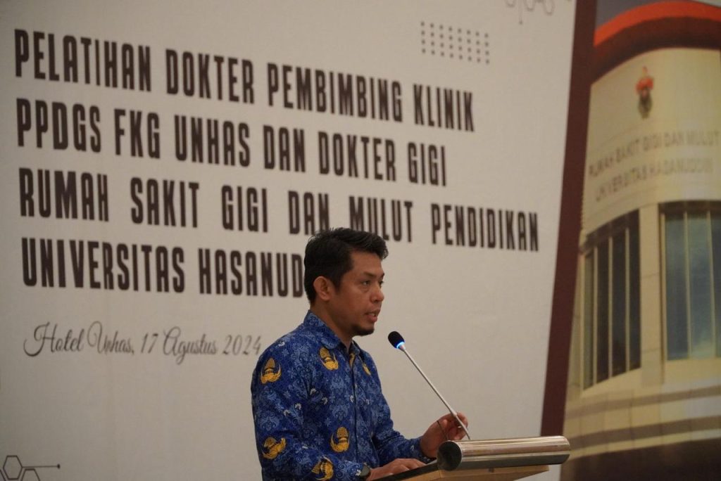 Sementara itu Dekan Fakultas Kedokteran Gigi (FKG) Universitas Hasanuddin, drg. Irfan Sugianto, M.Med.Ed.,Ph.D dalam sambutannya mengatakan, “Pelatihan ini merupakan inisiatif strategis untuk memastikan bahwa para pembimbing klinik dapat mengadopsi metode pengajaran yang inovatif dan relevan dengan perkembangan terbaru di bidang kedokteran gigi. “Pelatihan seperti ini sejak lama telah kita canangkan, dan alhamdulillah hari ini dapat terwujud dan terlaksana. Kita pertegas kembali, bahwa pelatihan pembimbing klinik bagi mahasiswa profesi dokter gigi spesialis (PPDGS) ini adalah pertama kali di laksanakan di Indonesia, dan yang melaksanakan adalah FKG dan RSGMP Unhas, ini terobosan yang sangat luar biasa,”  ujar drg, Irfan