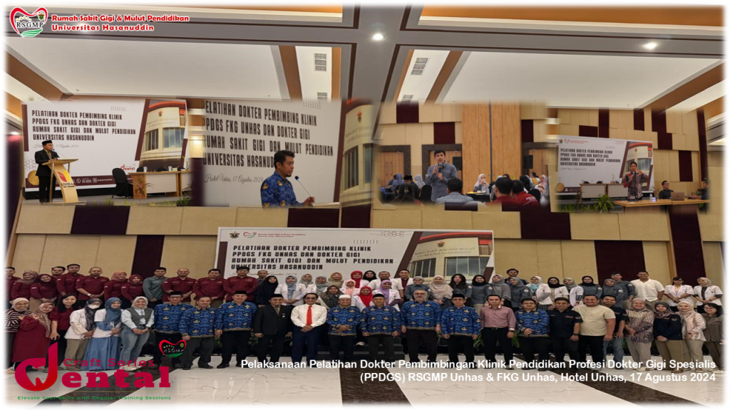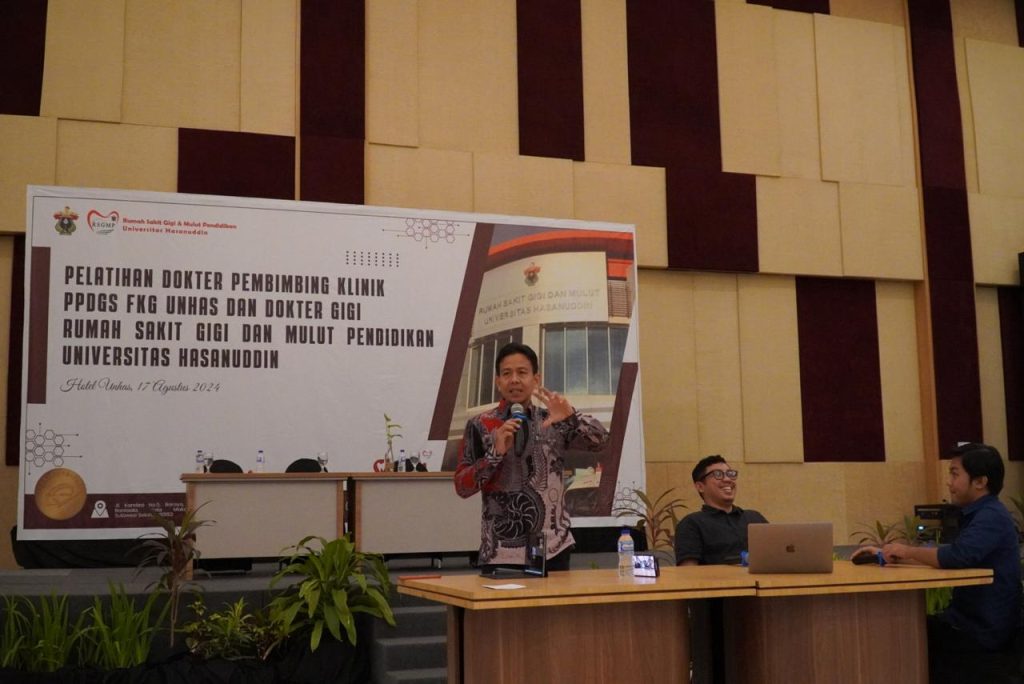 Rumah Sakit Gigi dan Mulut Pendidikan (RSGMP) bersama Fakultas Kedokteran Gigi (FKG) Universitas Hasanuddin (UNHAS) menggelar pelatihan pembimbing klinik bagi mahasiswa Program Pendidikan Dokter Gigi Spesialis (PPDGS). Hotel Unhas, Makassar. Sabtu (17/8/2024).