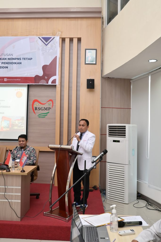(Dekan FKG Unhas. drg. Irfan Sugianto, M.Med.Ed.,Ph.D, dalam sambutan penerimaan SK Non ASN Tetap Lingkup RSGMP Unhas )